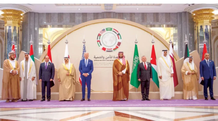 افتتحت «قمة جدة للأمن والتنمية» التي أقيمت في السعودية يوم السبت (16 يوليو)، بآية قرآنية واحدة، وهي آية «يا أيها الناس إنا خلقنكم من ذكر وأنثى…»، حسبما نقل التلفزيون السعودي.